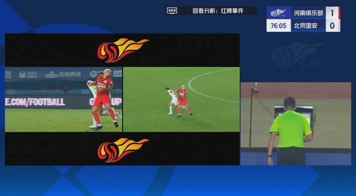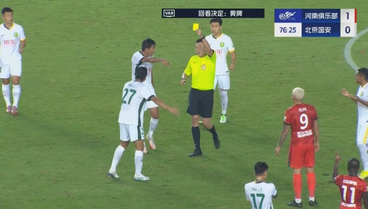 09月12日讯 中超第24轮,河南vs国安。比赛第77分钟,王刚无球状态下击打卡多索面部,主裁判看过VAR后对其处以黄牌警告。... -